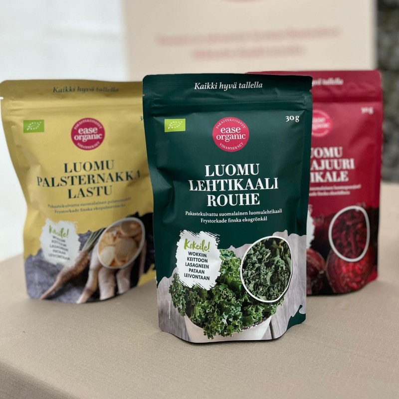Luomuliitto ry on valinnut Vuoden Luomutuotteeksi Ease Organicin pakastekuivatut luomuvihannekset. Kilpailun kunniamaininta myönnettiin Koivunalhon luomutilan Lupiiniunelma-kahvijuomalle. Palkinnonsaajat julkistettiin 1.10. Luomuelintarvikepäivässä Helsingissä.