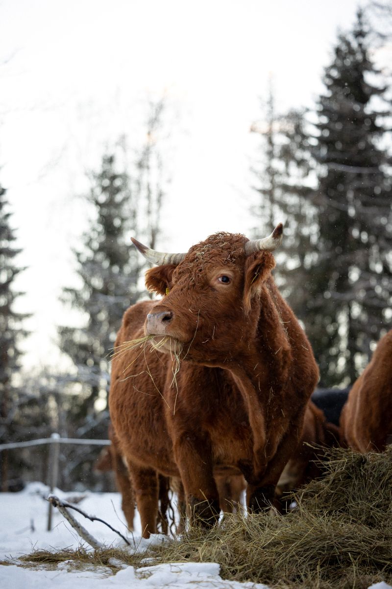 Kaikki eläimet ovat luomuvalvonnassa ja tilalla panostetaan erityisesti eläinten hyvinvointiin. Erittäin tärkeäksi osaksi hyvinvointia koetaan eläinten laidunnus ja talviulkoilu. Kesäisin kaikki eläimet kiertävät pelto- ja metsälaitumia. Talvisin on aidattuna useampi hehtaari metsälaidunta, jossa lehmät nauttivat oleskella. Metsässä ulkoilun jälkeen on mukava käydä makuulle kuivalle olkipedille.
